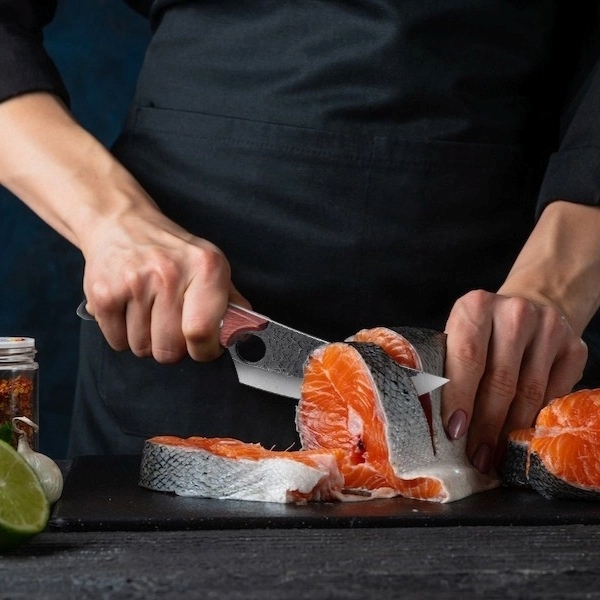 Che tu sia un cuoco amatoriale o un professionista, HISUI migliora ogni preparazione. Dal tritare le verdure al filettare la carne, il suo design ergonomico e il peso bilanciato permettono tagli fluidi e leggeri che trasformano ogni gesto in arte.